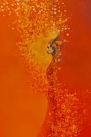 "Serenity in Profile" presenteert een verlengd zij-aanzicht van een vrouw, waarbij haar elegante en vloeiende silhouet de volledige lengte van het doek beslaat. De achtergrond, een harmonieus kleurverloop van licht oranje naar donker oranje, biedt een warme en rustgevende ambiance die de vrouw omgeeft. Dit kleurenschema benadrukt niet alleen de vrouw, maar geeft ook een gevoel van diepte en ruimte, waardoor de compositie een bijna dromerige kwaliteit krijgt.