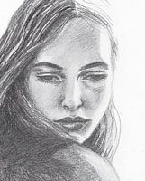 Een getekend portret van een ingetogen moment van een mooie vrouw.