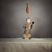 Een grapje in de foto, poes vist naar een houten vis. Dit is een van de beelden uit een serie van 5 waarmee ik door ben gedrongen naar een van de winnende series van Salon Nationaal van de fotobond in 2021. Voor de andere 4 foto's kijk even bij mijn andere werken.