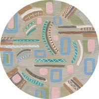 Abstract werk door ART Eva Maria, speciaal geschilderd voor ronde prints. Dit werk is schilderachtig en heeft verfstreken en grafische vormen die beweging suggereren. De kleuren zijn rustig.