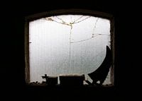 Een gematteerd raam, voorzien van staal. Licht komt er doorheen, buiten blijft onzichtbaar.
