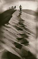 Sesreim Namibia: Tourists climbs a dune. The Namib desert is known to be one of the most inhospitable places on the planet.