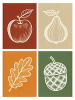 Breng de gezellige, rustieke charme van de herfst in huis met deze prachtige vierdelige set kunstreproducties. Met klassieke symbolen van het herfstseizoen zijn deze prints voorzien van gedetailleerde, grillige illustraties van een appel, een peer, een eikenblad en een eikel. Elk ontwerp heeft een rijk, warm kleurenpalet - dieprood,…