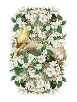 Een wonderlijke collage met veel bloemen en 1 vogel.