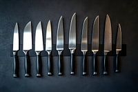 Messen in perfecte staat, elk met zijn eigen geschiedenis en doel. Dit ensemble straalt zowel precisie als vakmanschap uit, met een vleugje verfijning. Ideaal voor in de keuken, waar elke snede de passie voor koken inspireert en aanwakkert. Een echte blikvanger voor fijnproevers!