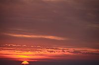 Prachtig ondergaande zon met een helder oranje gekleurde hemel en streepjes wolken achtergrond