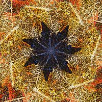 Bij dit werk was de originele foto een close-up van gevallen herfstbladeren bedekt met een laagje rijp. Maar daar zie je weinig van terug. Ik krijg vooral associaties met een zeester. En gecombineerd met de zeven punten van die zeester leverde dat meteen een mooie titel voor het werk op...