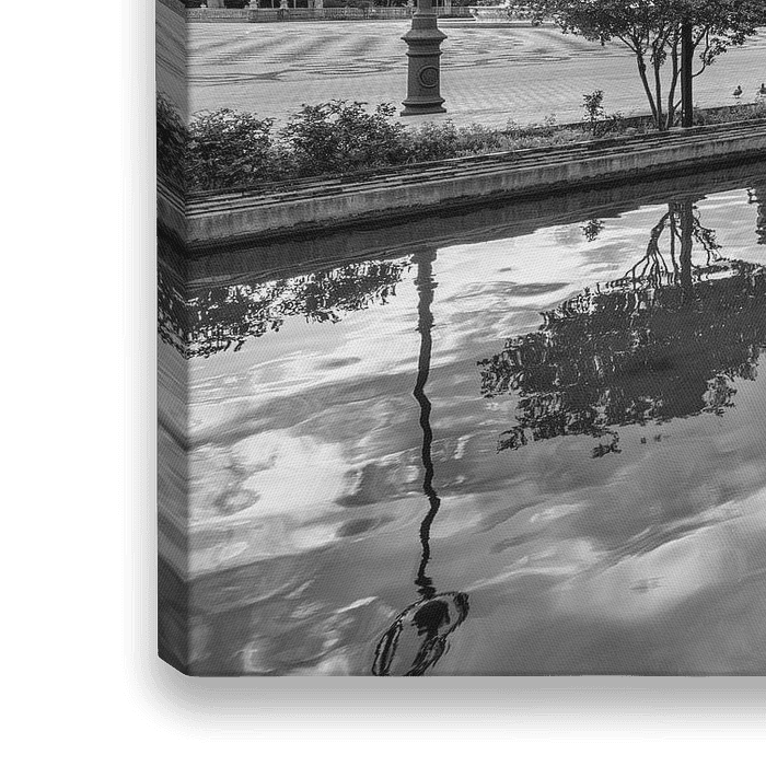 * Sevillia Plaza de Espana bij zonsondergang * Architectuur stadsgezicht in Andalusië / Spanje in zwart wit .