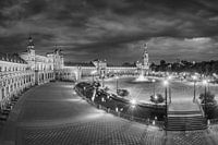 De Plaza Espana van de stad Sevillia in Andalusië in zwart-wit. 90320379ays