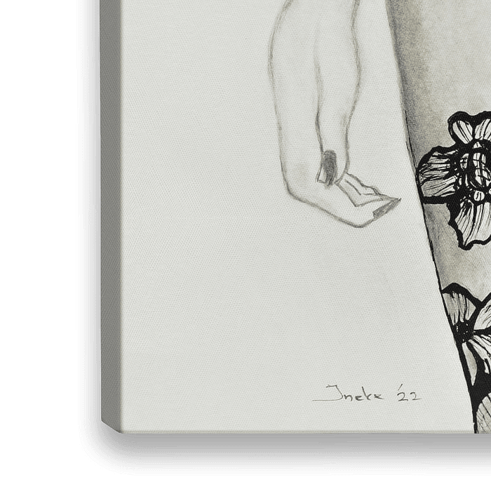 Lingerie / Sexy / Vrouw / Kant / Zwart / Wit / Zwart-Wit /Handgetekend/ Tekening / Potlood / Inkt / Inkt pen / Illustratie / Figuratieve kunst / Romantisch/ Vrouwelijk naakt / Lichaam /Benen / Kousen/ Panty's / Bloemen / Kanten bloemen / Fashion / Mode / Erotiek / Erotisch / Uitdagend/