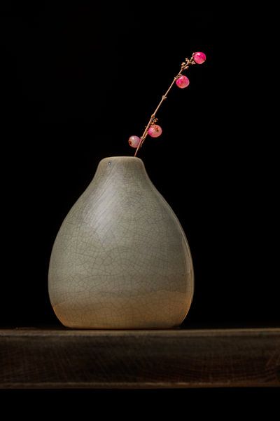 Een vaasje bij de kringloopwinkel en een takje besjes uit het plantsoen. Zo simpel kan het zijn.