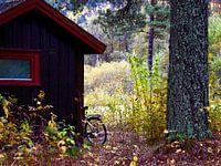 In the middle of nowhere kwam ik dit huisje tegen in het bos in Noorwegen. Er stond een fiets tegen en een mooie boom naast het huisje. Het beeld straalde rust uit, de sfeer die ik sowieso in Noorwegen vind heersen.