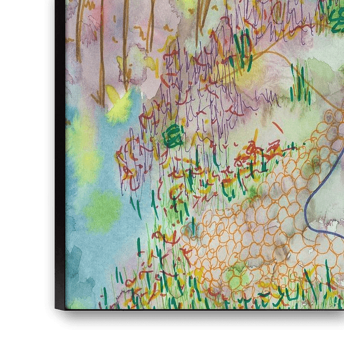 Deze aquarel geeft op abstracte wijze een totaal sfeer weer van het Texelse landschap in De Koog met de Noordzee, het strand, de duinen, de heide, het bos en de dynamiek in het dorp zelf. De zachte kleuren van het aquarel, gecombineerd met de wat hardere getekende lijnen, maken het onderscheid tussen de verschillende stukjes duidelijk en geven zo de context, maar ook het contrast weer.