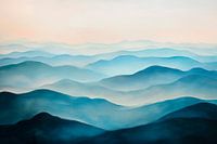 Zachte golven in verschillende tinten blauw nodigen je uit om te ontspannen en creëren een harmonieuze sfeer. Dit schilderachtige landschap straalt een betoverende sereniteit uit die de gedachten de vrije loop laat. Ideaal voor de slaapkamer, het bevordert een rustige slaap en een ontspannen stemming terwijl het de kamer opfleurt met natuurlijke schoonheid.