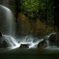 Mysterieus sfeerbeeld van oplichtend water van de waterval in Nice in Frankrijk.