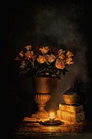 Een sfeervol stilleven met rozen  en een mooi gloed dat doet verlangen naar de herfst en Winter.