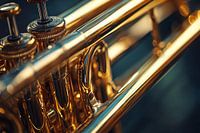 Sfeervolle achtergrond van muziekinstrument, Close-up met licht bokeh detail, Trombone