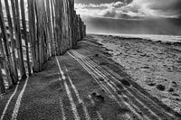 Een spel van schaduw en licht op het strand van Zandvoort en boven zee een fikse regenbui.
