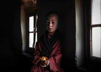 Zijn zusje nodigde ons uit op de thee bij haar ouders in het zeer afgelegen Sking village, in de Zanskar vallei, de Indiase Himalaya. Bedeesd stond hij daar, terwijl wij thee dronken en keek wat wij in het huis van zijn ouders deden, en liet ons zijn kleine yak boter lamp zien, die hij voor de gelegenheid had aangestoken. In de schaars verlichte woning uit leem en stenen viel er zacht strijklicht over zijn gezicht en kleding. Mijn hart als fotograaf maakte een klein sprongetje. Een plaatje uit duizenden met Rembrandt licht bovendien!