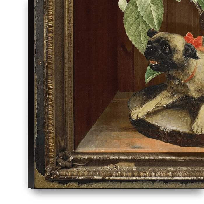 Antiek, surrealisme en het schilderij "Mopshond Pandemonium" van Carl Reichert, een bijzondere combinatie.