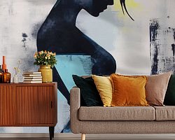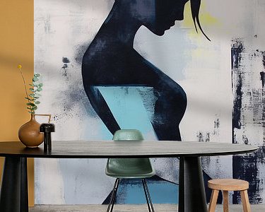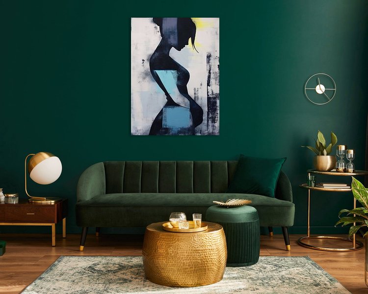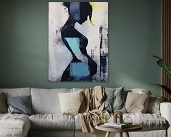 Details: vrouw, abstract, silhouet, blauw, geel, wit, zwart, textuur, kunst, modern