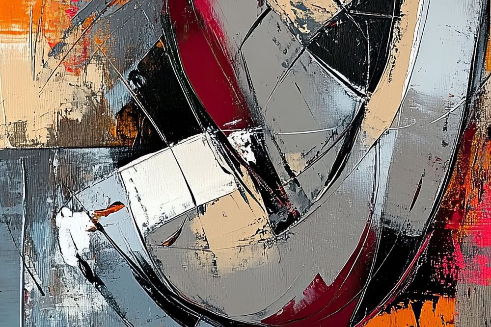 Details: abstract, geometrisch, oranje, grijs, rood, modern, kunst, vormen, textuur, contrast