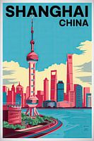 Hoog vliegen in een kleurrijk stedelijk ontwerp: een iconisch skyline-motief met de opvallende Oriental Pearl Tower en de glinsterende Shanghai Tower, omringd door wolkenkrabbers. De harmonieuze combinatie van zachte pasteltinten en heldere lijnen weerspiegelt de levendige geest van deze metropool - een waar juweel aan de Huangpu rivier.