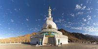 De Shanti Stupa in Leh, Ladakh, Jammu en Kasjmir, India, is een prachtig symbool van het boeddhisme en voert de kijker mee in een fascinerende en spirituele sfeer. Toen ik naar het panoramische beeld van de Shanti Stupa keek, werd ik meegesleurd in een golf van vrede en sublimiteit.