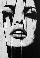 Zwart wit portret van een vrouw in ontsteltenis. Haar dromen zijn uiteengespat. Dit is te zien in de barsten in haar gezicht, de lijnen van haar ziel. Een eenvoudige afbeelding met sober kleurgebruik, symboliserend voor haar huidige gemoedstoestand. Echter barsten zullen weer helen en ze zal zich gesterkt voelen door weer een stukje levenservaring. Zwartwit. Sober. Eenvoud. Liefde.