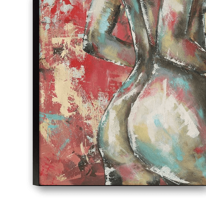 Schilderij toont een vrouwensilhouet in een abstracte stijl. Kleurrijke achtergrond. Deze kunst is gekozen en opgehangen in het Soho House in Amsterdam.