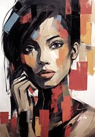 Abstract expressief portret van een vrouw in matte retro kleuren.