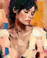 Abstract portret van een vrouw in een Impasto verfstijl met grove penseelstreken op canvas in pastel tinten.