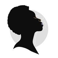 Portret van een vrouw, in silhouet, op witte en grijze achtergrond.