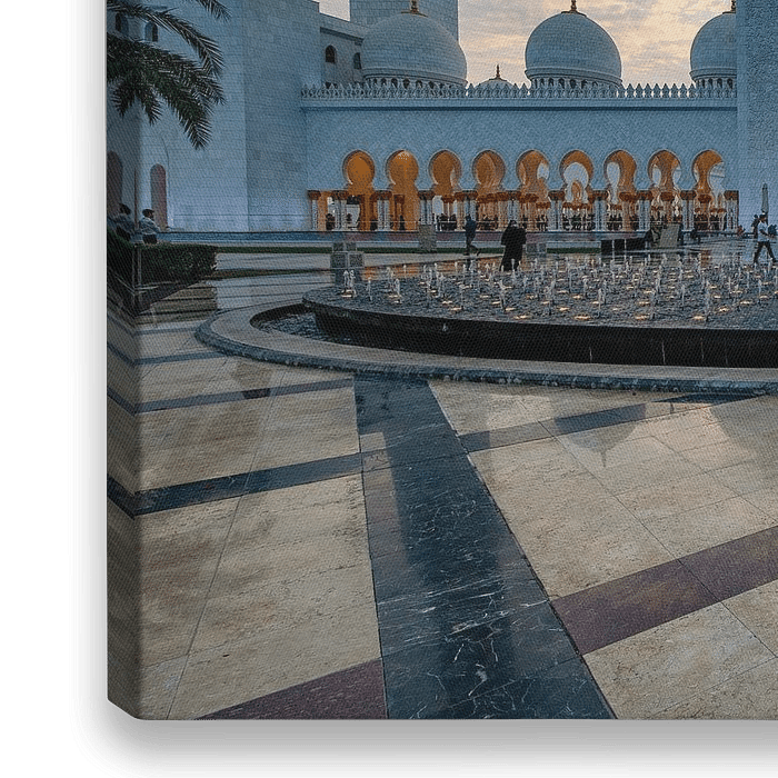 De zon ondergaat en verlicht de wolken langs de Sheikh Zayed-moskee in Abu Dhabi. De beweging in de wolken is net genoeg om een soort van monition blur te creëren waardoor je twee keer naar de foto kijkt.