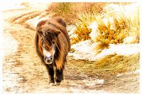 Deze pony loopt in het duingebied en hoort daarmee tot de groep grootte grazers. Dit terwijl deze shetlander niet veel groter is dan een flinke hond. Het dier gaat op in zijn omgeving alwaar vele bruin tinten de dienst uitmaken