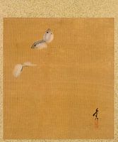 Over ‘Shibata Zeshin - Blad uit album met seizoensgebonden thema's, esdoornbladeren en veren’