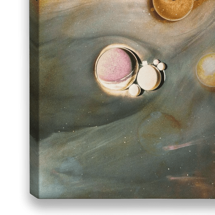 Abstracte kunst in aarde en pastel tinten met bubbels en glinsterende grove olieverf textuur. Fantasie mixed media