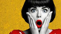 Koop dit portret Shock Pop - Verrassing in de stijl van Pop Art van Klaus Tesching - Art-AI op canvas, aluminium dibond, (ingelijste) fotoprint, behang en ArtFrame, op maat geprint in Fine-Art kwaliteit.