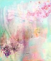 Abstract romantisch mixed media-schilderij met vrouw in pastel kleuren