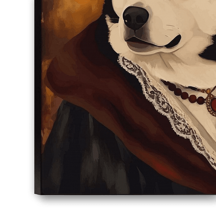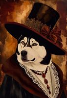 De Siberische Husky staat met majestueus vertrouwen en geest, gevangen in een Victoriaanse schilderstijl die zijn avontuurlijke ziel verheft tot tijdloze kunst. Zijn ogen - scherp, intelligent en gevuld met ongetemde energie - worden het middelpunt en drukken zowel loyaliteit als de roep van verre horizonten uit. De penseelvoering benadrukt de atletische bouw en de vloeiende vacht, waardoor het portret een dynamische zachtheid krijgt die beweging overbrengt, zelfs in stilte. Er is een gevoel van geschiedenis ingebed in de scène, alsof deze nobele hond besneeuwde paden en lange reizen heeft doorstaan en nu wordt geëerd in een grote hal voor zijn veerkracht en partnerschap met de mensheid. De klassieke sfeer voegt een laag van prestige toe, waardoor de Husky bijna lijkt op een ontdekkingsreiziger die vereeuwigd is na een leven vol opmerkelijke verhalen. Maar onder deze grandeur schuilt genegenheid - een betrouwbare metgezel wiens hart klopt van toewijding. Verzamelaars zullen gefascineerd zijn door de mix van wildernisgeest en verfijnde kunstzinnigheid, een perfecte weergave van schoonheid en kracht in elkaar verstrengeld. Dit stuk brengt een avontuurlijk aura in de kamer en herinnert kijkers aan vrijheid, uithoudingsvermogen en de onbreekbare band met een trouwe vriend die altijd klaarstaat om aan je zijde het onbekende tegemoet te rennen.