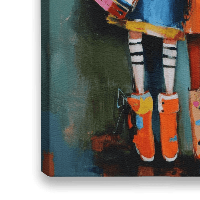 Dit kleurrijke en expressieve schilderij brengt de speelsheid van vriendschap tot leven. De felle tinten oranje, blauw en roze zorgen voor een vrolijke en eigentijdse uitstraling. Perfect voor in een kinderkamer, speelhoek of woonkamer waar warmte en vrolijkheid welkom zijn. “Side by Side” is een echte sfeermaker die elke ruimte een…
