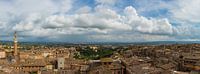 Een prachtig panoramische zicht over Siena. Met het Palazzo Pubblico in het zonlicht.