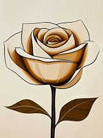 In dit werk wordt een abstracte roos weergegeven in zachte bruine en beige tinten. De vloeiende lijnen en delicate vormen creëren een sierlijk en elegant beeld dat een subtiele zachtheid uitstraalt. De warme kleuren in combinatie met de verfijnde details maken het werk tot een rustgevend en aantrekkelijk geheel, ideaal voor elke ruimte waarin een serene sfeer gewenst is.