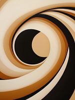 Dit werk brengt de energie van een draaiende twister in een elegante abstracte stijl, uitgevoerd in warme bruintinten en zachte accenten. De cirkelvormige bewegingen suggereren een spiraalvorm die kracht en dynamiek uitstraalt, terwijl de kleuren een gevoel van warmte en comfort oproepen. Deze combinatie van vormen en kleuren geeft een gevoel van diepte en beweging, waardoor de kijker zich bijna kan verliezen in het draaiende patroon.
