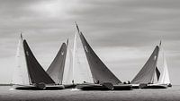 Het lijkt soms of skûtsjes een sierlijke dans uitvoeren als ze opkruisen naar de bovenwindse boei. Hier zeilen de schepen op het IJsselmeer in de baai van Lemmer.