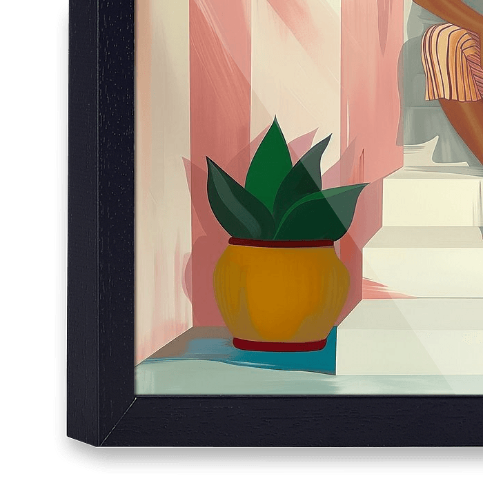 Dit kunstwerk brengt een gevoel van pure rust en ontspanning over. Het beeld van een vrouw die geniet van een moment van stilte en zonlicht roept een sfeer van kalmte en geluk op. Geïnspireerd door momenten van persoonlijke reflectie en de schoonheid van eenvoudig genieten, willen we met dit werk een gevoel van vrede en harmonie…