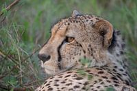 Jonge cheetah tijdens de siësta, Zuid-Afrika. Hij keek even op toen we naderbij kwamen en ging toen, als een echte kat, weer lekker liggen. Ongelofelijk hoe relaxed ze waren en hoe dichtbij we kwamen zonder dat ze zich eraan stoorden.