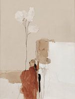 Een zachte dialoog tussen aarde en lucht: fragiele bloemen groeien uit robuuste vlakken in warme aardetinten. De contrasterende structuren – ruwe verf, fijne lijnen en lichte reliëfs – creëren een balans tussen kracht en kwetsbaarheid. Deze abstracte composities ademen stilte, eenvoud en een ingetogen poëzie die blijft hangen.