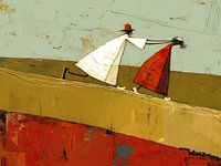Details: boot, abstract, figuren, rood, beige, kunst, schilderij, gestileerd, modern, minimalistisch