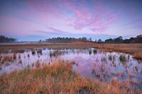 Silent herfst zonsopgang over wilde meer in het bos Mandefijld, Friesland, Nederland